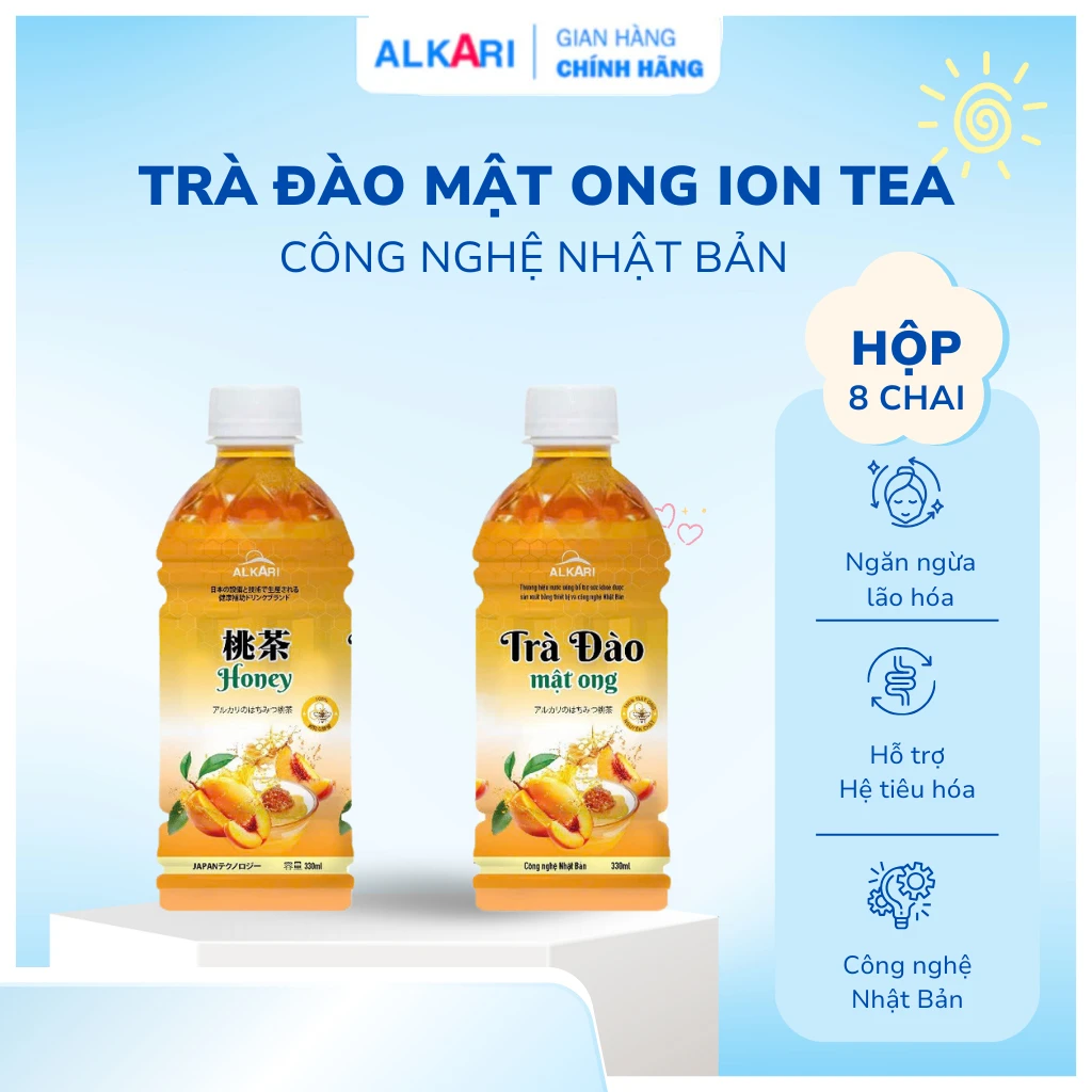 Trà đào mật ong ALKARI, trà thanh nhiệt bổ sung khoáng chất, vitamin có lợi cho sức khỏe Thùng 24 chai 330ml